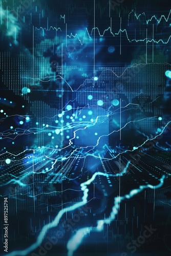 Abstract global stock market background with electrifying lightning effects highlighting data flow.