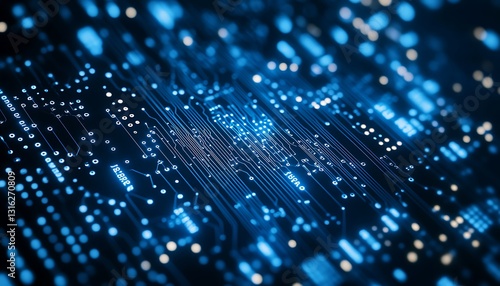 Abstract glowing blue circuit board.