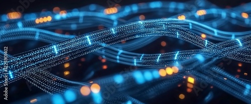 Abstract glowing blue data streams.