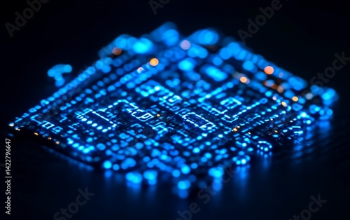Abstract glowing blue digital data circuit board.