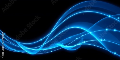 Abstract Glowing Blue Wave Light Trail on Black Background
