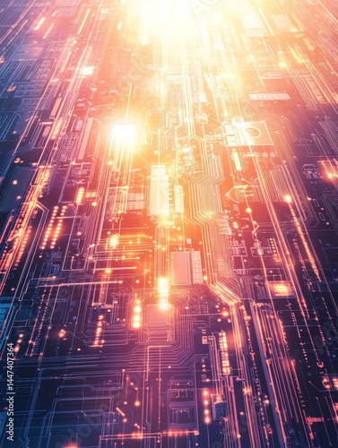Abstract Glowing Circuit Board with Vertical Light Flow