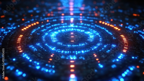 Abstract glowing circular light patterns.