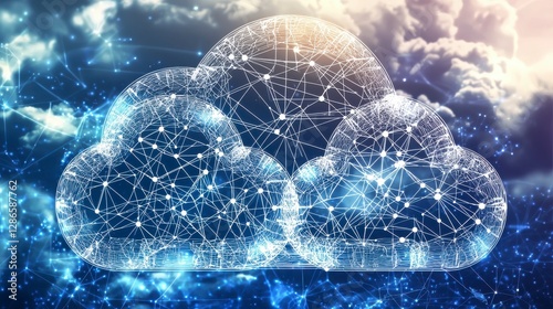 Abstract Glowing Cloud Network Digital Data Visualization