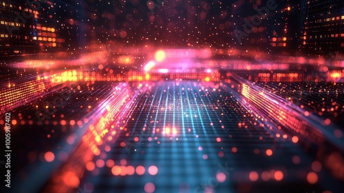 Abstract glowing digital landscape with vibrant colors and depth, ideal for technology and innovation themes.
