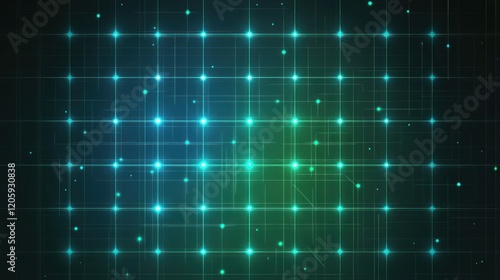 Abstract glowing grid pattern with luminous dots and lines on a gradient background