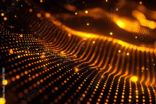 Abstract glowing grid with wave pattern against a dark background, ready for data and tech-themed designs.