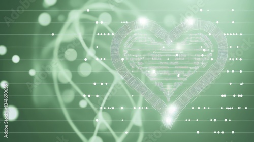 Abstract Glowing Heart on Green Digital Background