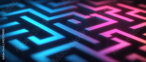 Abstract glowing maze, complex path, problem solving, challenge, technology background