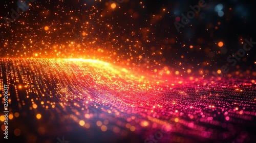 Abstract glowing particles flow, dark background, digital art, screen saver