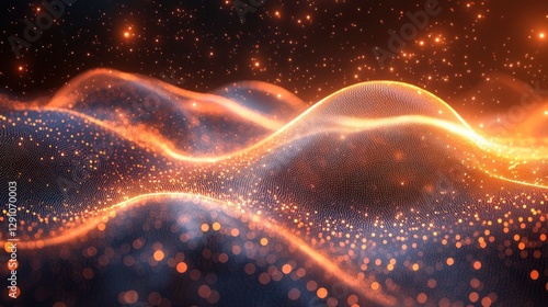 Abstract glowing particles waves, digital art, background