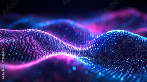 Abstract Glowing Wave Background with Pink and Blue Particles