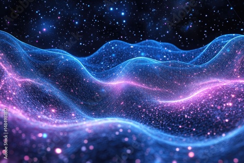 Abstract glowing wave of light particles in a night sky