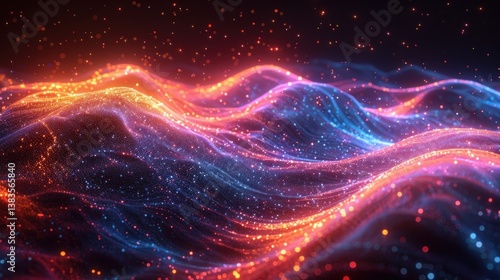 Abstract glowing waves of particles in dark space