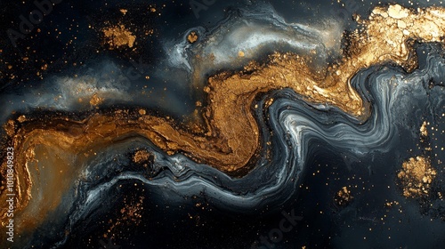 Abstract Gold and Black Marbled Texture Generative AI