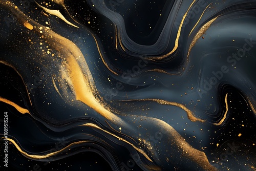 Abstract gold dust patterns on a deep black background