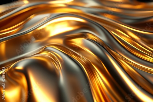 Abstract gold prisms, fluid design, 3d render, Generative AI