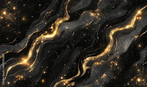 Abstract gold streaks and twinkling specks background for modern design