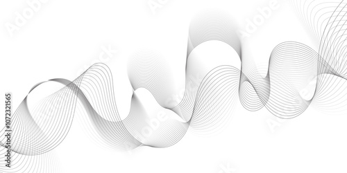 Abstract gradient grey smooth element swoosh speed wave modern stream background. Wave with lines created using blend tool. Abstract frequency sound wave lines and twisted curve lines background.