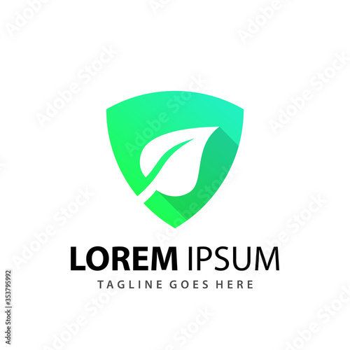 Abstract Gradient Shield Leaf Green Logo Design Template Premium Vector