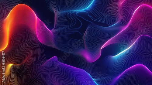 Abstract gradient with neon outlines in Pride colors, creating dynamic shapes and patterns on a black background.