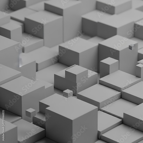 Abstract Gray Cube Landscape - Modern Geometric Design.