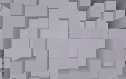 Abstract gray elegant cube geometric background. Chaotically advanced rectangular bars. 3D Rendering, 3D illustration