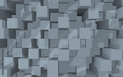 Abstract gray elegant cube geometric background. Chaotically advanced rectangular bars. 3D Rendering, 3D illustration
