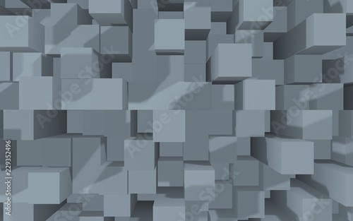 Abstract gray elegant cube geometric background. Chaotically advanced rectangular bars. 3D Rendering, 3D illustration