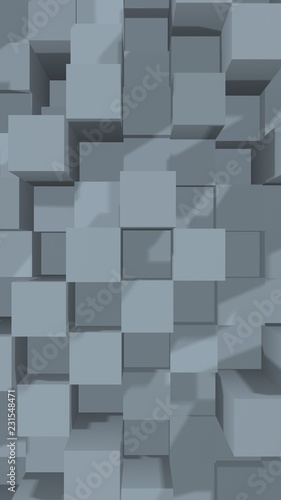 Abstract gray elegant cube geometric background. Chaotically advanced rectangular bars. 3D Rendering, 3D illustration
