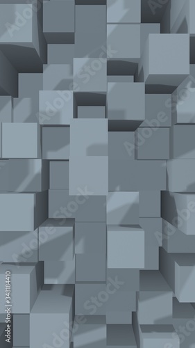 Abstract gray elegant cube geometric background. Chaotically advanced rectangular bars. 3D Rendering, 3D illustration