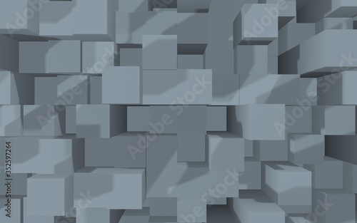 Abstract gray elegant cube geometric background. Chaotically advanced rectangular bars. 3D Rendering, 3D illustration