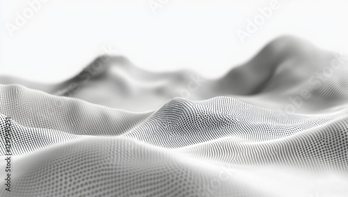 Abstract grayscale digital landscape, dotted surface, mountainous form
