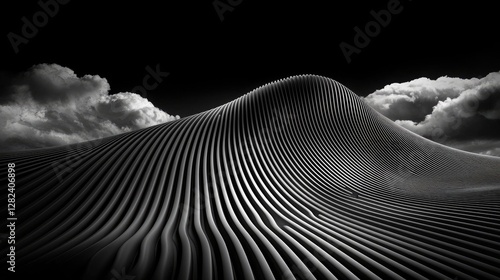 Abstract grayscale landscape, flowing lines, cloudscape background, architectural design concept