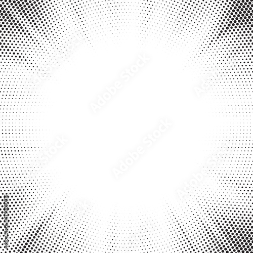 Abstract grayscale sunburst pattern with halftone dots and textured background