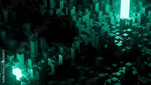 Abstract green and black pixelated digital art background