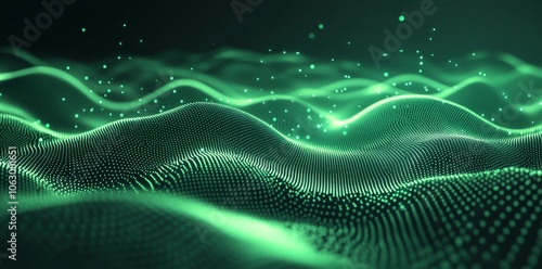 Abstract green background with curved lines and dots