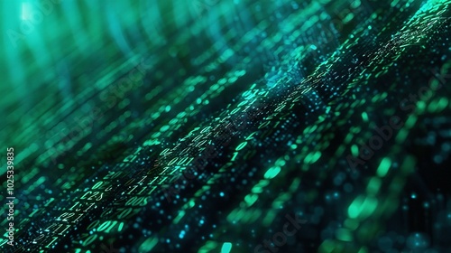 Abstract Green Digital Data Stream with Blurred Bokeh Background