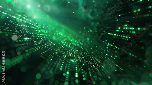 Abstract green digital interface with data streams and glowing patterns, perfect for tech backgrounds.