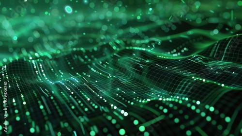 Abstract green digital interface with data streams and glowing patterns, perfect for tech backgrounds.