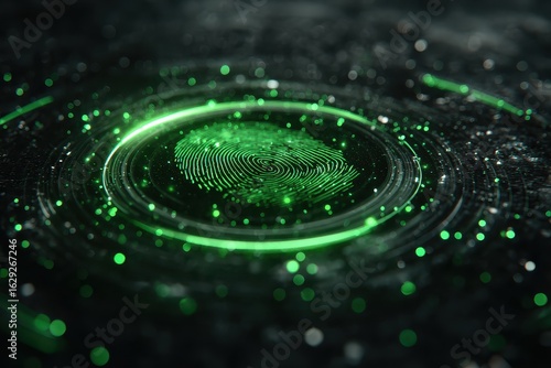 Abstract Green Fingerprint in Circular Pattern with Digital Elements