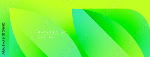 Abstract green gradient background. Overlapping shapes create dynamic visual effect. Text reads background design. Simple, modern aesthetic.
