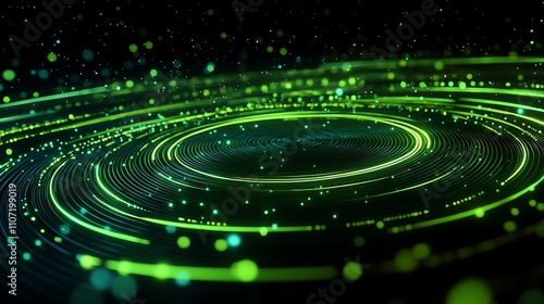 Abstract Green Light Trails Creating Hypnotic Circular Patterns in a Dark Background for Creative Designs and Projects