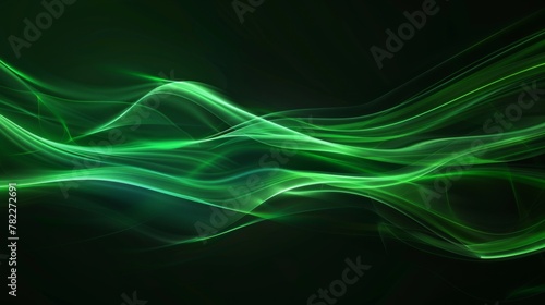 Abstract green light waves on dark background