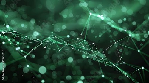 Abstract green network background with connected dots and lines. Futuristic digital technology or data visualization concept.