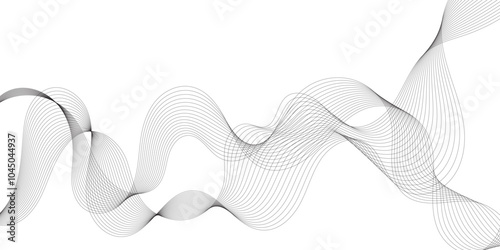 Abstract grey, white smooth element swoosh speed wave modern stream background. Wave with lines created using blend tool. Abstract frequency sound wave lines and twisted curve lines background.