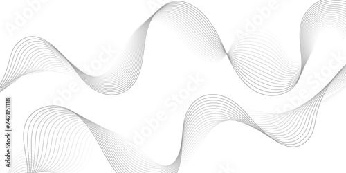 Abstract grey, white smooth element swoosh speed wave modern stream background. Wave with lines created using blend tool. Abstract frequency sound wave lines and twisted curve lines background.