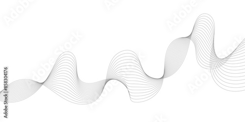 Abstract grey, white smooth element swoosh speed wave modern stream background. Wave with lines created using blend tool. Abstract frequency sound wave lines and twisted curve lines background.