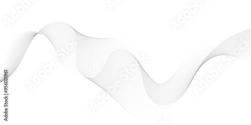 Abstract grey, white smooth element swoosh speed wave modern stream background. Wave with lines created using blend tool. Abstract frequency sound wave lines and twisted curve lines background.