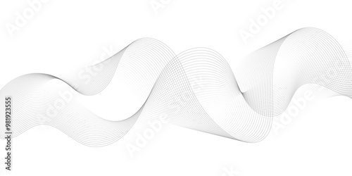 Abstract grey, white smooth element swoosh speed wave modern stream background. Wave with lines created using blend tool. Abstract frequency sound wave lines and twisted curve lines background.